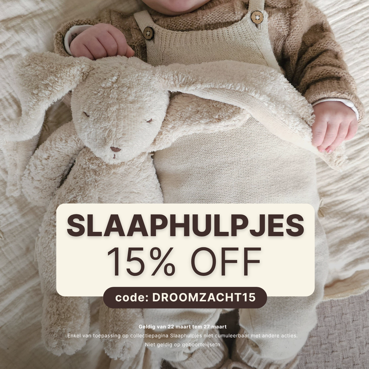 Gebruik code: DROOMZACHT15 in je winkelmandje en sla je slag! Actie geldig tem 27maart - niet geldig op geboortelijsten