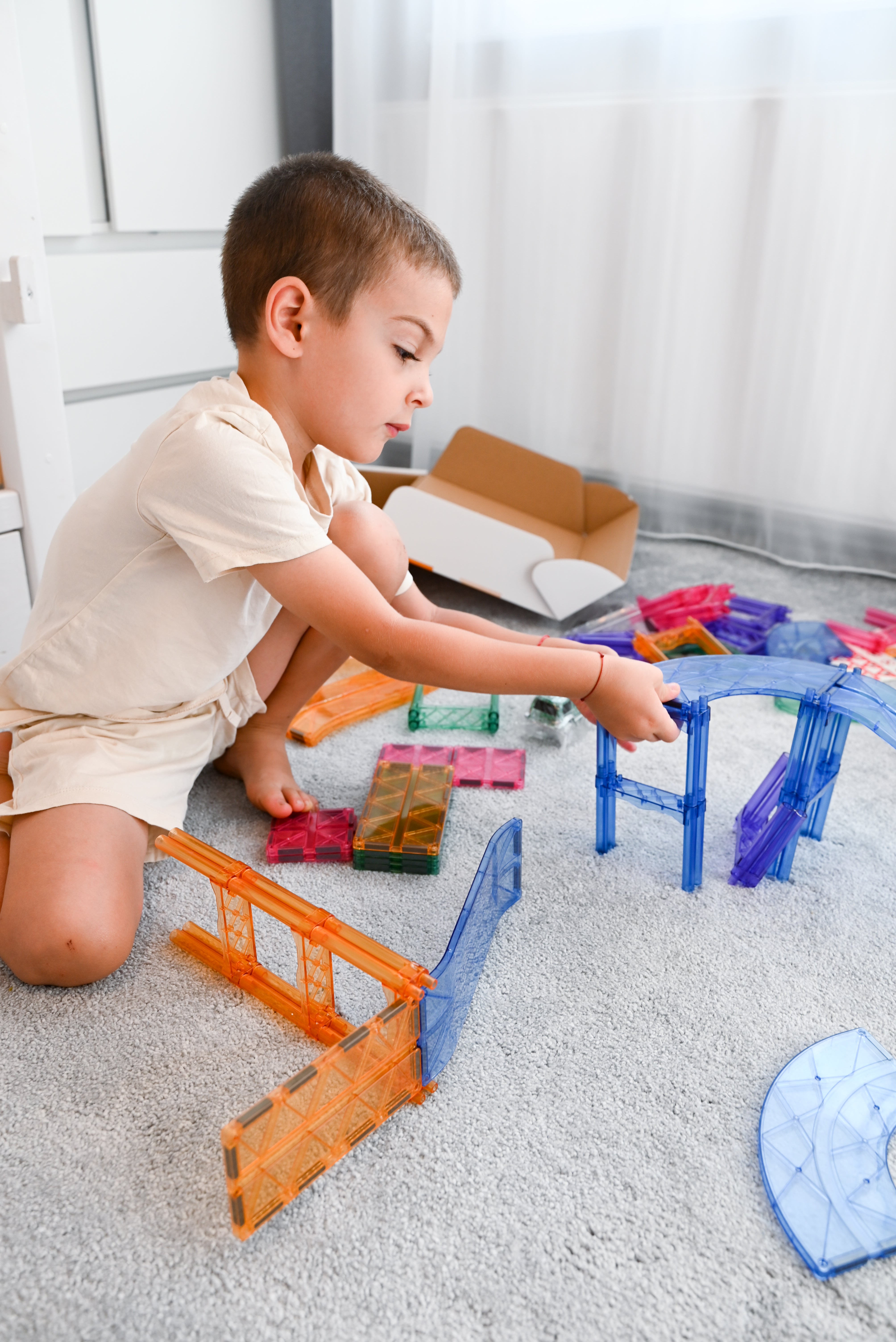 Magnetisch bouwen is een innovatieve en educatieve speelvorm waarbij kinderen structuren, torens en fantasiewerelden creëren door tegels met ingebouwde magneten aan elkaar te koppelen. In tegenstelling tot traditioneel constructiespeelgoed klikken de tegels automatisch aan elkaar vast, waardoor stevige en stabiele bouwwerken ontstaan. Dit type constructiespeelgoed voor kinderen stimuleert niet alleen de creativiteit, maar ook belangrijke vaardigheden zoals ruimtelijk inzicht, probleemoplossend denken en fijne motoriek.