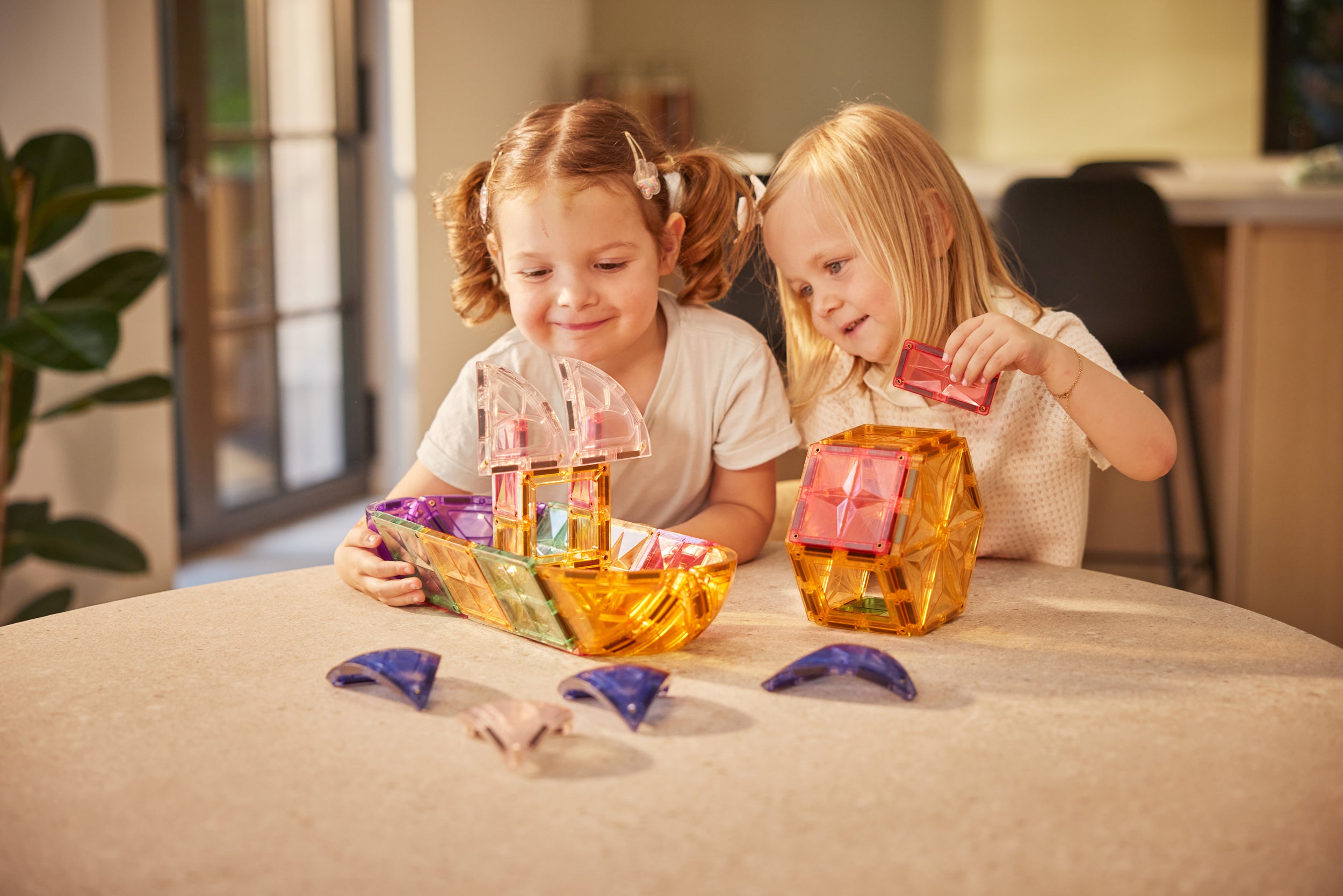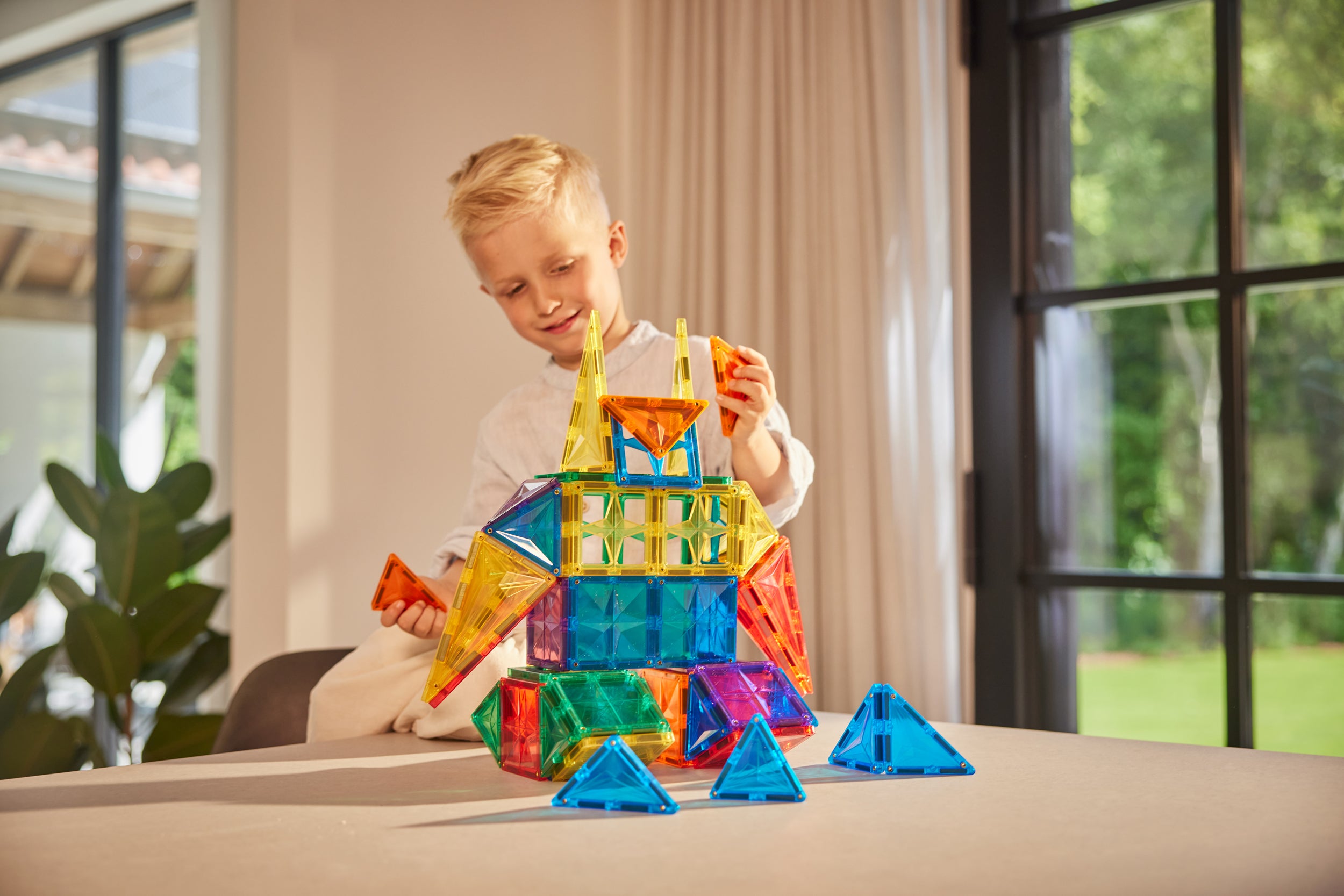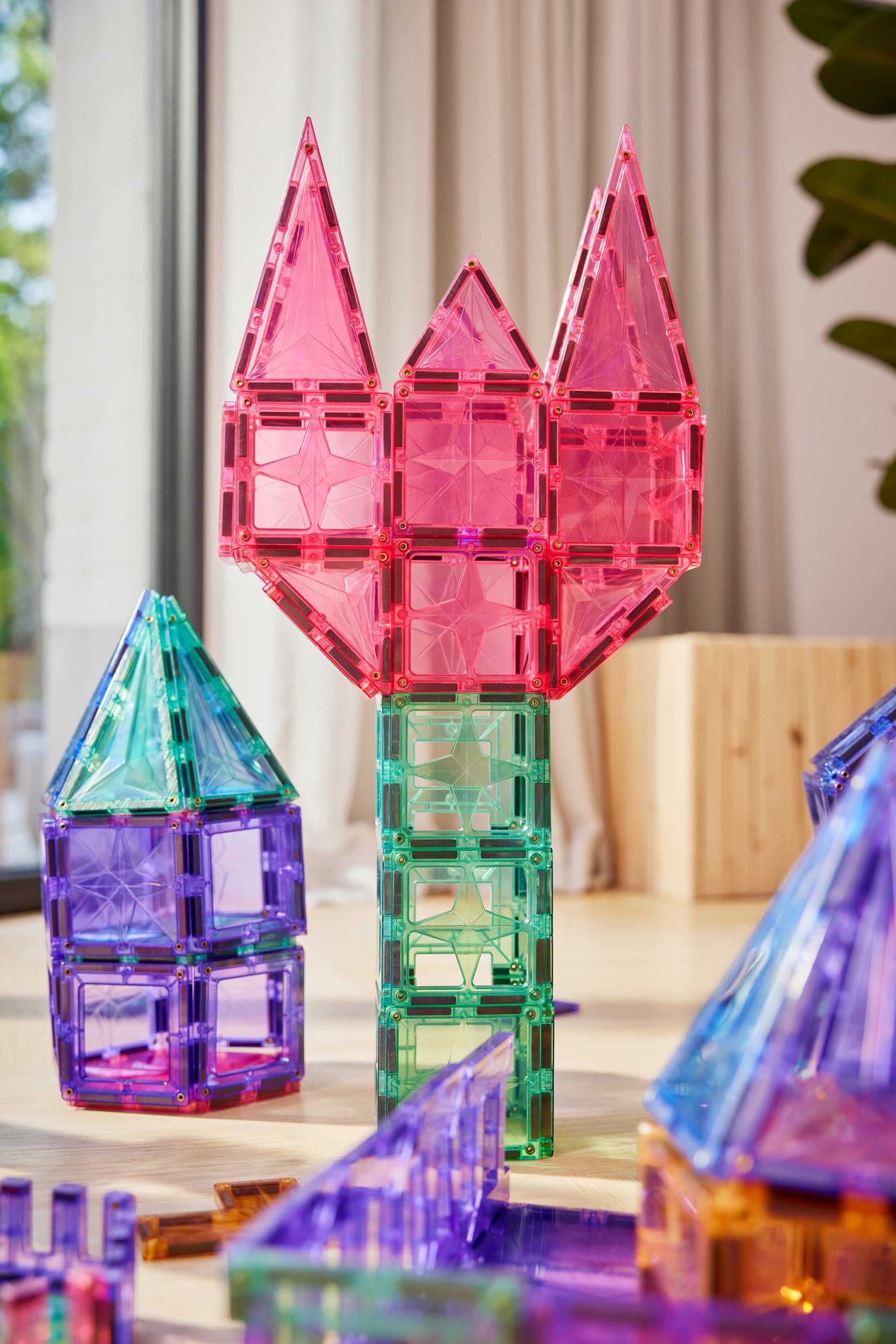 Een van de meest populaire bouwprojecten met Cleverclixx zijn kastelen. Door de magnetische tegels in verschillende kleuren te combineren, kunnen kinderen dromerige paleizen creëren met torens, kantelen en zelfs doorkijkjes. De doorzichtige panelen zorgen voor een magisch lichtspel, vooral wanneer de zon erdoorheen schijnt. Voeg kleine poppetjes toe en het kasteel komt tot leven met ridders, prinsessen en spannende avonturen.