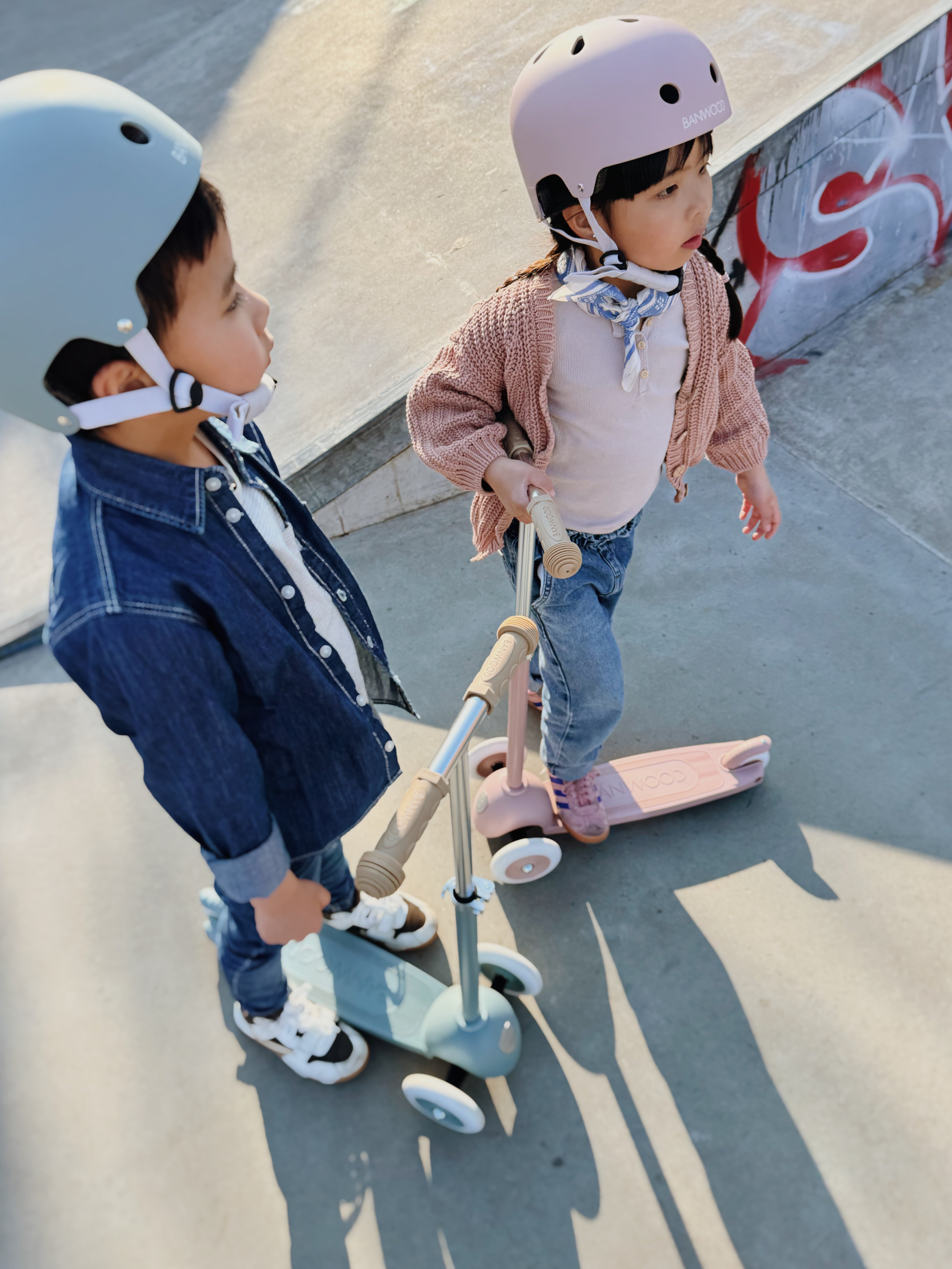 Helemaal nieuw is de ECO line step à €89. Super mooie pastel kleuren met bijpassende helmen.