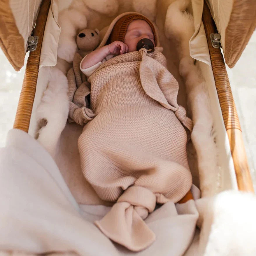 Denk aan zachte wollen sokjes die goed blijven zitten, multifunctionele tetradoeken of een gebreide cocoon die je baby omhult als een warm nestje. Materialen maken daarbij een groot verschil. Merinowol is bijvoorbeeld bijzonder geschikt voor baby’s: het is temperatuurregulerend, antibacterieel en zelfreinigend. Bovendien voelt het heerlijk zacht aan op de gevoelige babyhuid, ook bij eczeem of huidirritaties.