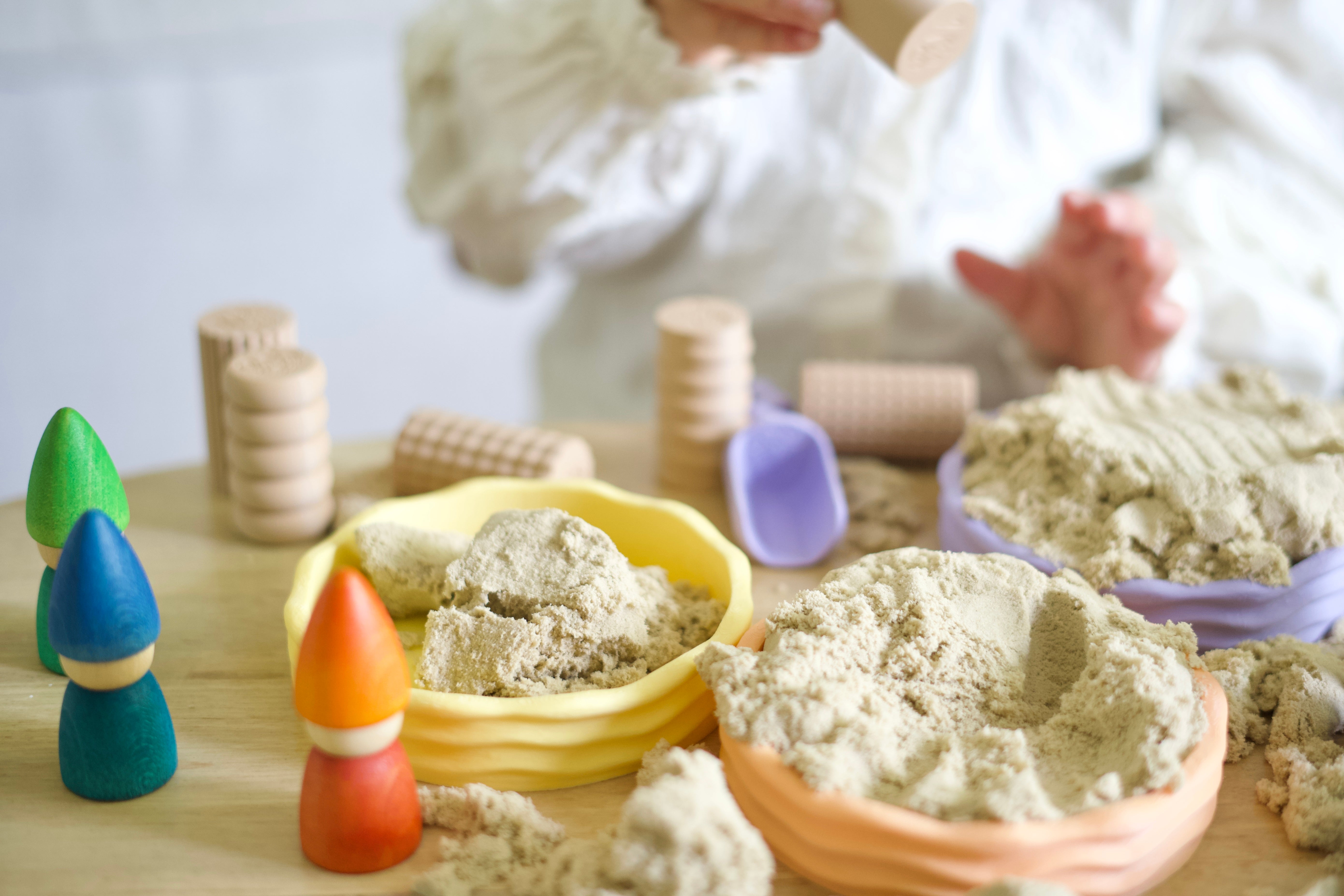 Hieronder zie je de bakjes en rollers van Grennn, kinetisch zand. Ook leuk trouwens om te combineren met Grapat.