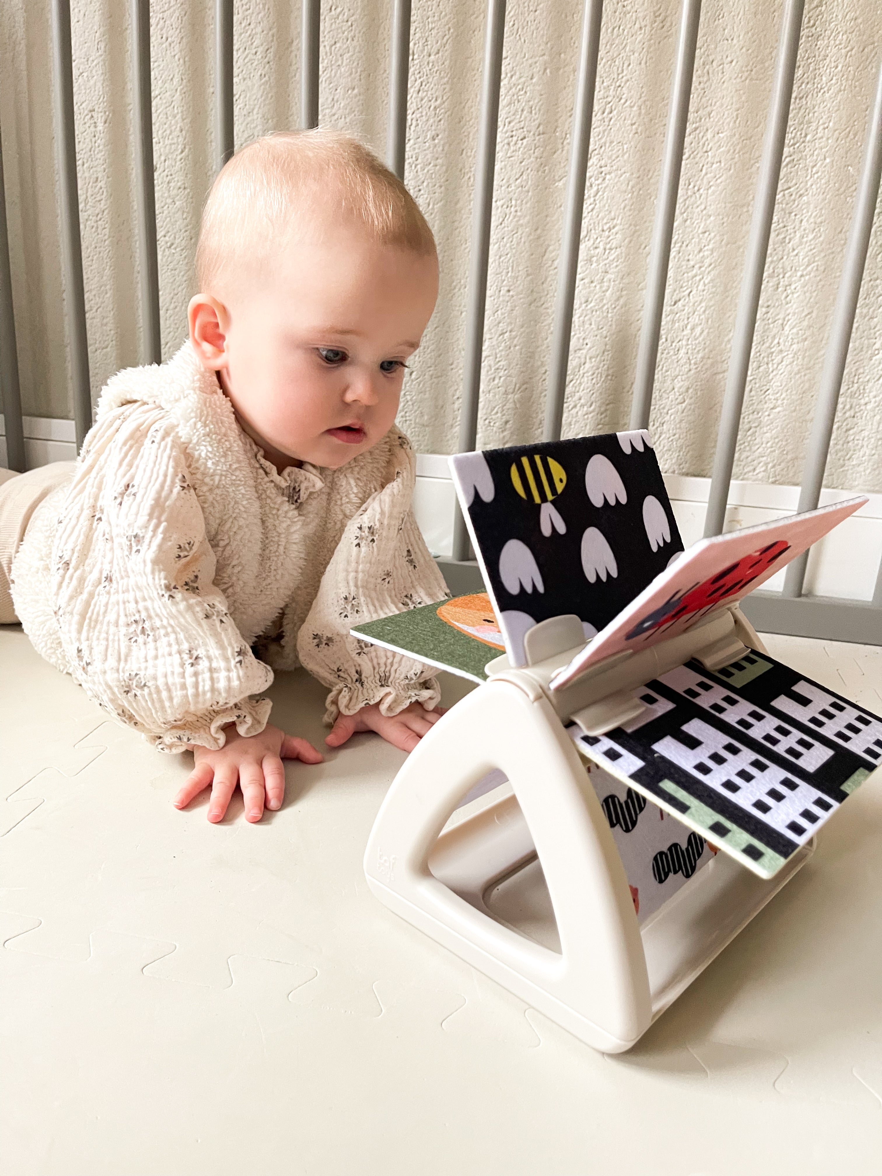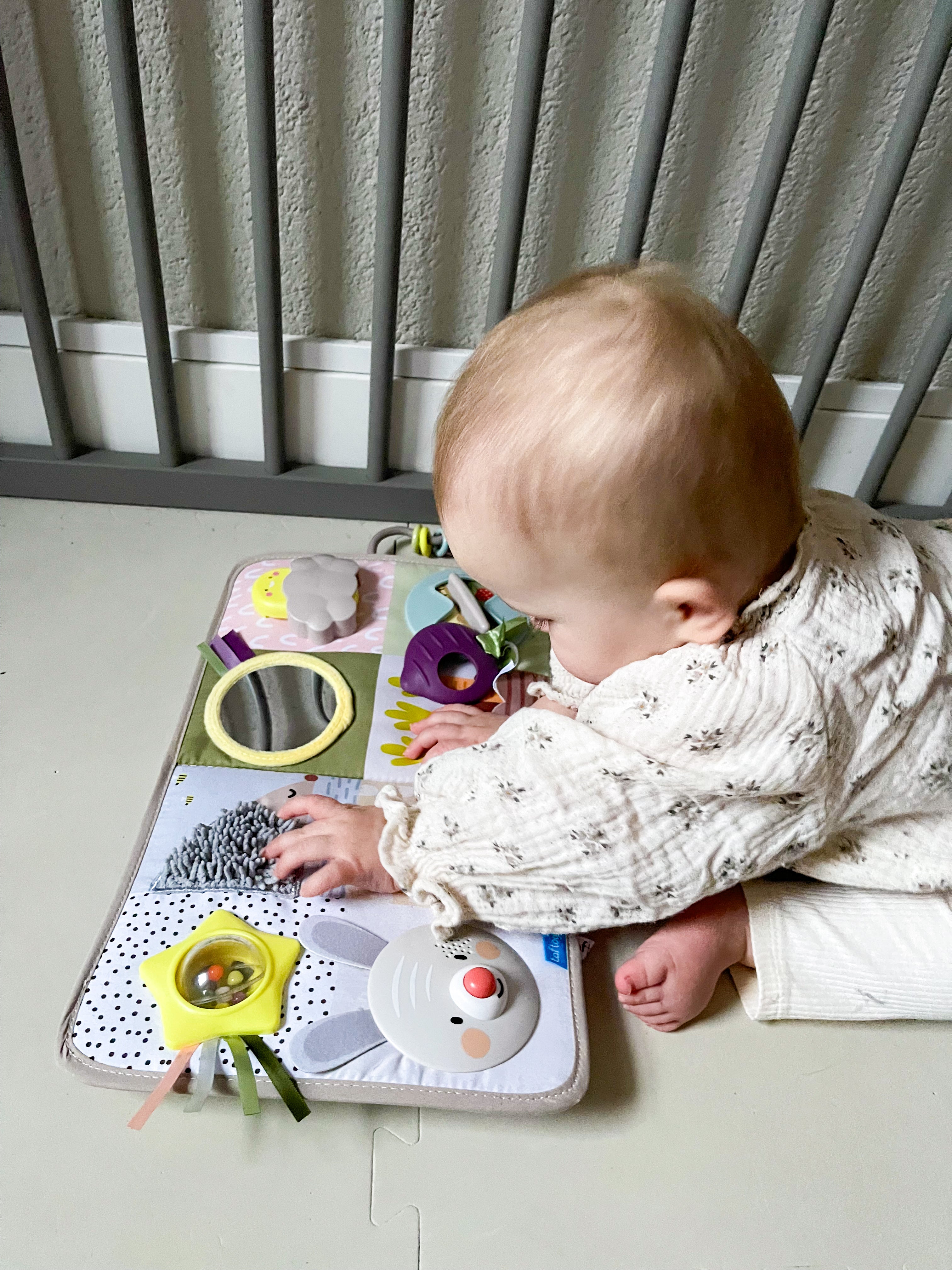 - Verschillende texturen helpen baby’s vormen en materialen te herkennen.