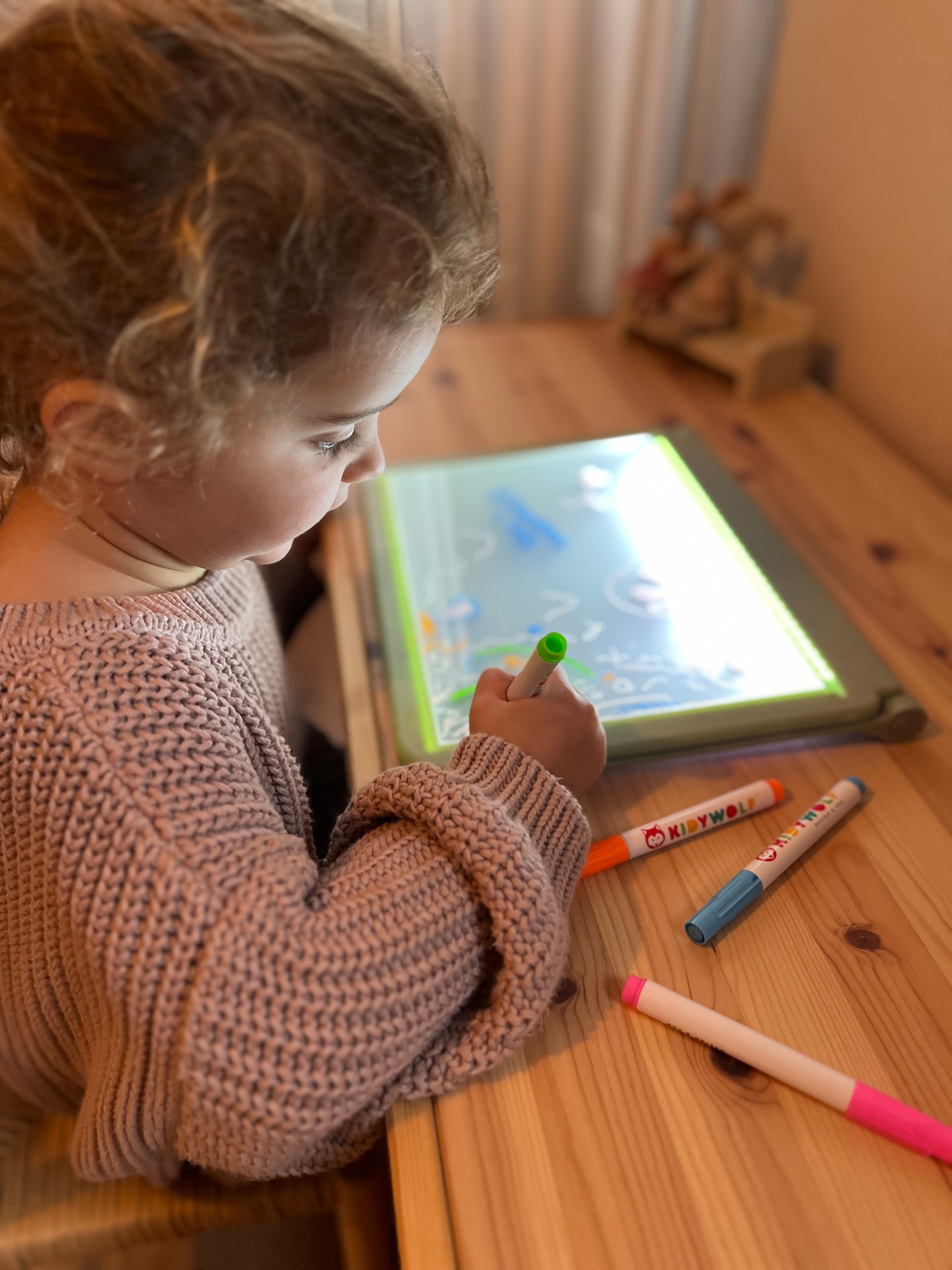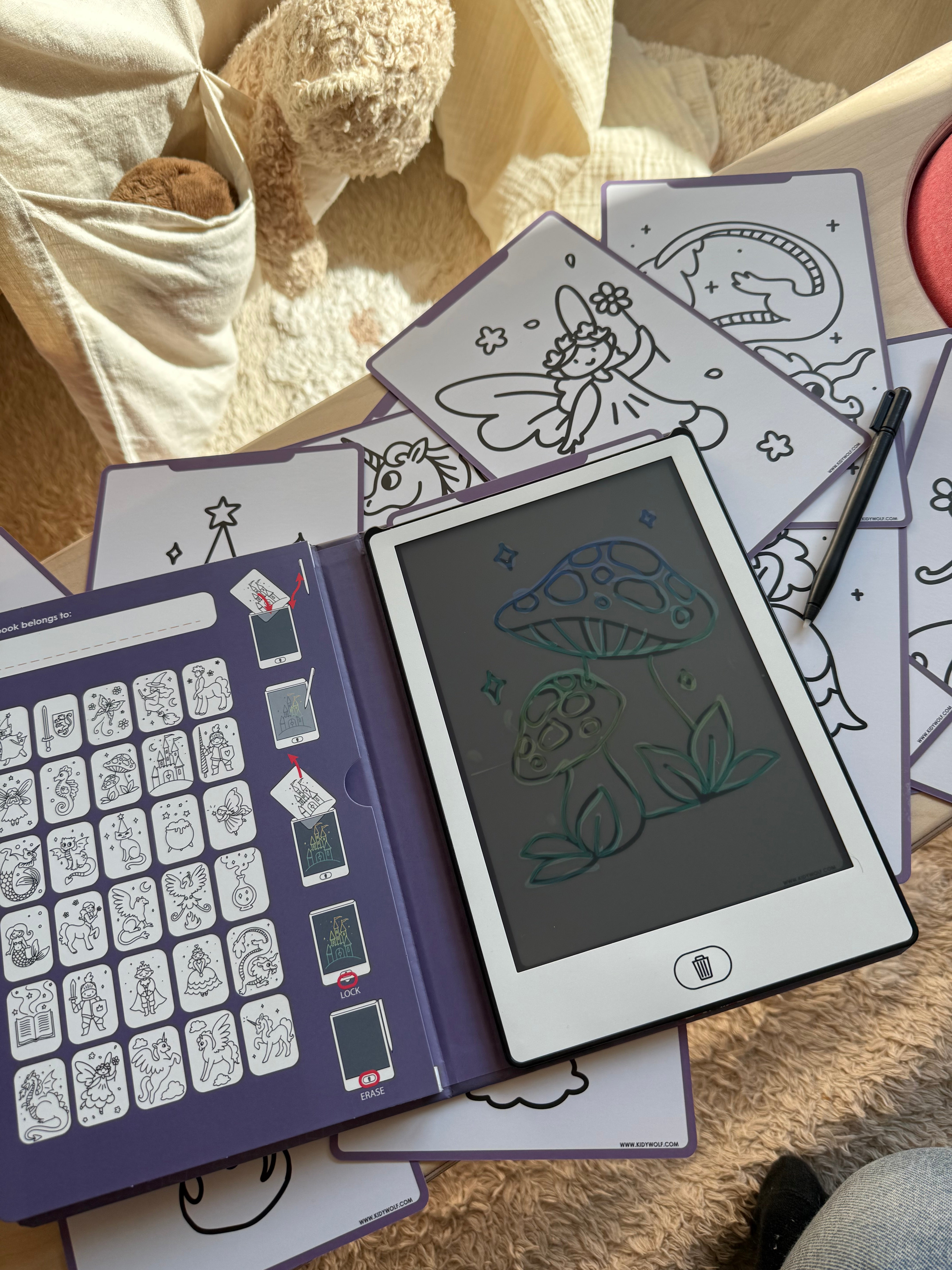 De KidyDraw van Kidywolf is een digitale tekentafel die kinderen uitnodigt om hun artistieke talent te ontdekken zonder schermtijd. Het is een interactieve tool die creativiteit en motoriek bevordert.