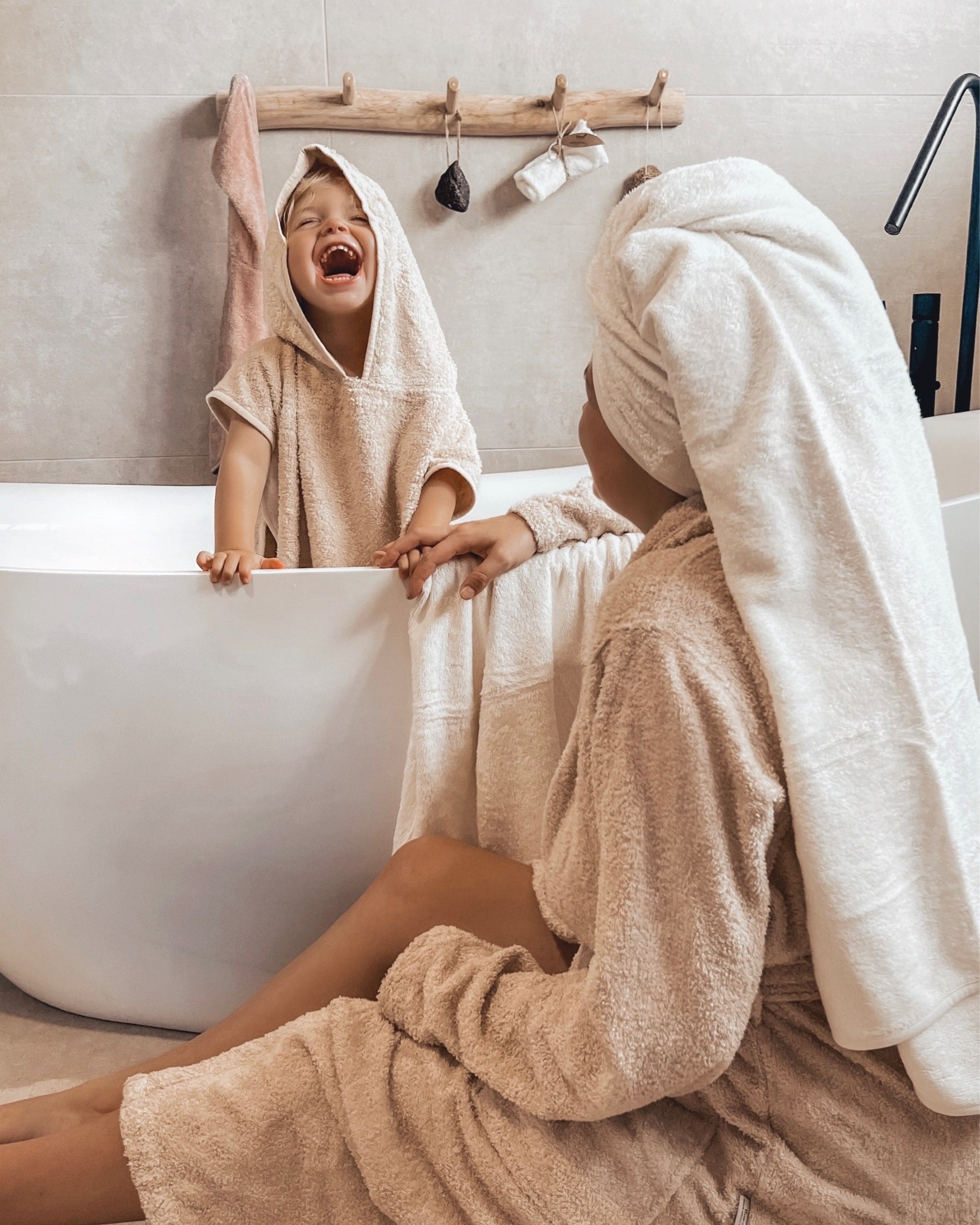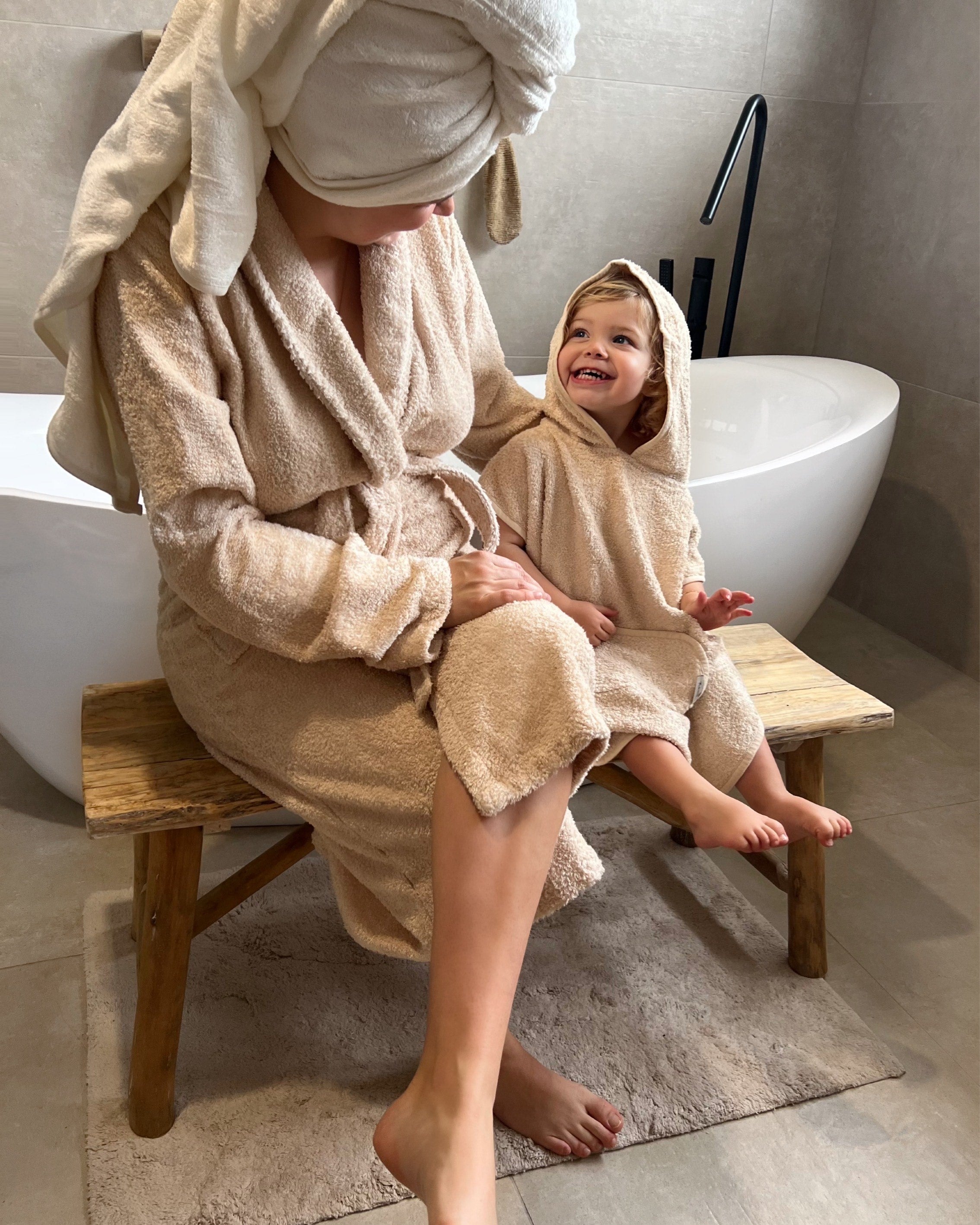 De Timboo badjasjes zijn er niet enkel voor kids, maar ook perfect voor mama & papa. YAY! Zo kan je ook meteen heerlijk matchen met je kleintje, hoe leuk! De badjassen voor kids hebben een opbergzakje, ruime kap & heeft een touw om de badjas te sluiten.