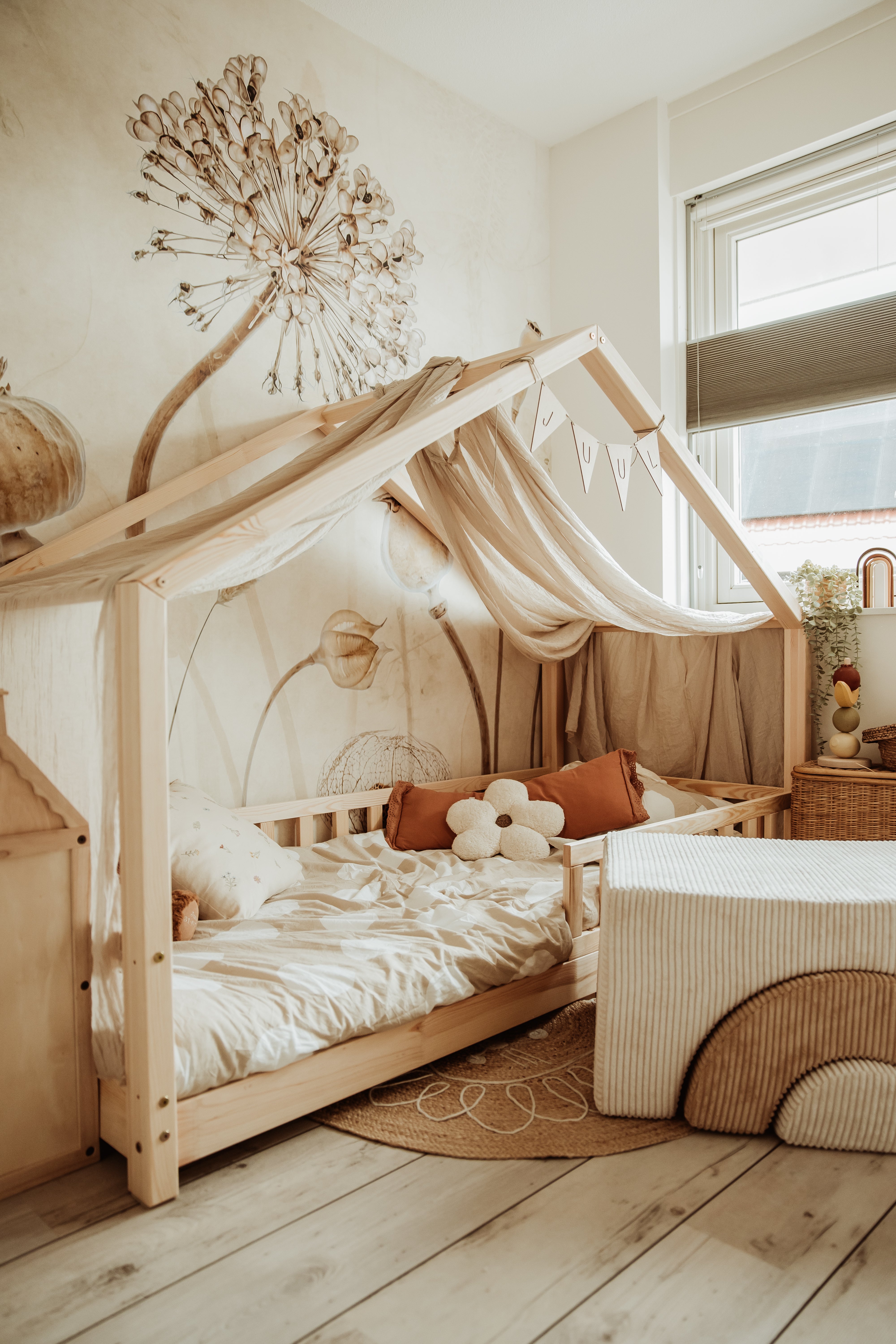 Dit zijn drie superhandige voordelen. Je kindje kan makkelijk zelf in en uit bed kruipen, omdat de matras laag tegen de grond ligt. Je kindje moet dus geen gekke toeren uithalen om in of uit zijn bed te geraken. Dit is veiliger voor je Flamingo, maar het is ook nog eens gemakkelijker voor jou als ouder. Ook kan je kindje zelf beslissen of hij/zij in bed wil blijven liggen of eruit wil komen. Of je kiddo kan gewoon lekker op zichzelf spelen in zijn bedhuisje.
