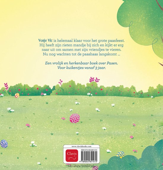 Vosje Vic en vriendjes – Klaar voor Pasen is een vrolijk en herkenbaar prentenboek waarin Vosje Vic helemaal klaar is voor het grote paasfeest. Hij heeft zijn rieten mandje bij zich en kijkt er vol verwachting naar uit om samen met zijn vriendjes te vieren en te wachten op de paashaas. Het verhaal neemt jonge kinderen mee in de lente en de feestelijke sfeer van Pasen, met kleurrijke illustraties en eenvoudige, speelse tekst die perfect is om samen te lezen.