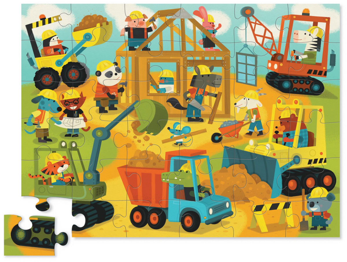 De Crocodile Creek Shaped Box puzzel Busy Builders met 36 stukjes is een vrolijke puzzel voor kinderen die gefascineerd zijn door bouwvoertuigen en constructiewerken. Graafmachines, vrachtwagens en andere stoere machines zorgen voor een kleurrijk en levendig puzzelbeeld dat meteen de aandacht van jonge bouwfans trekt.