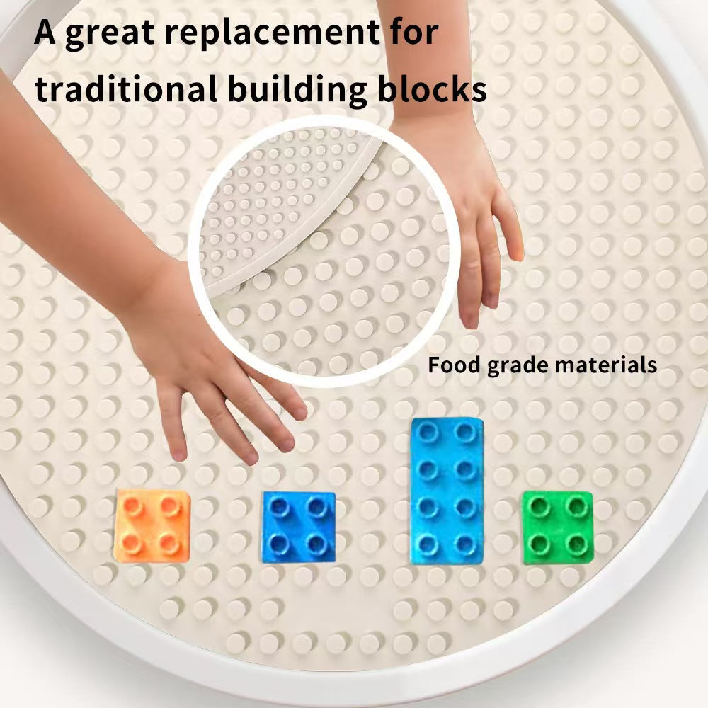 Een speelmat om in je sensorische tray te leggen! Met deze play mat kan je bouwen met je Lego blokken op een stevige ondergrond! De siliconen mat is langs beide kanten te gebruiken. Langs de ene kant is ze compatibel met Lego en langs de andere kant met Duplo blokje.
