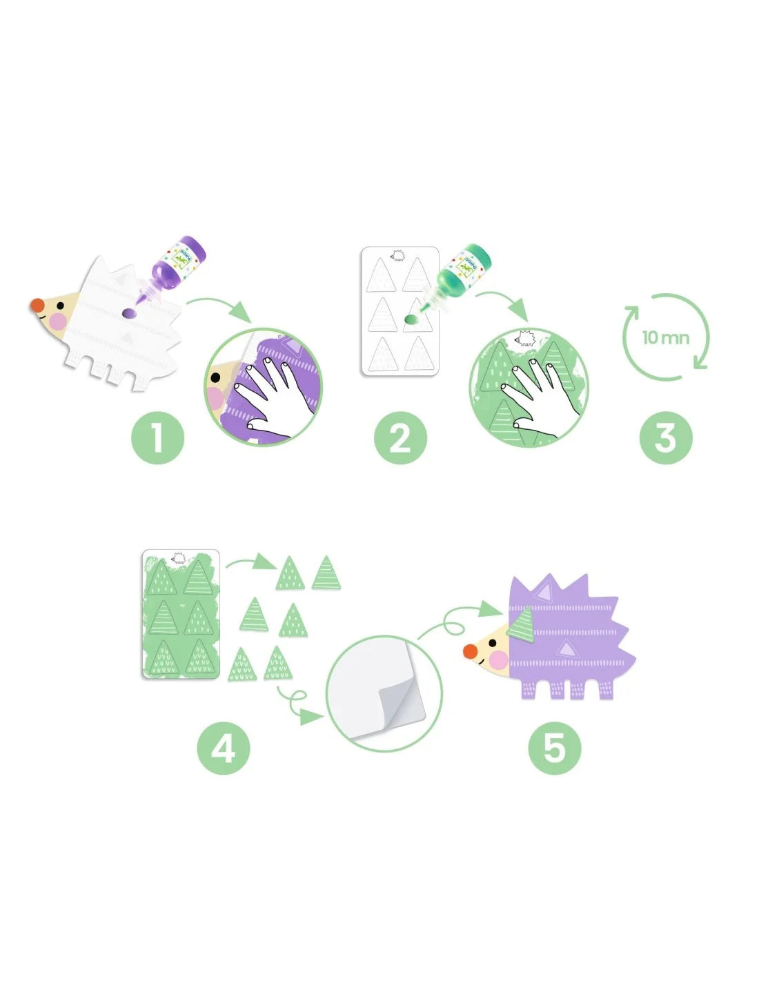 Met dit creatieve pakket ontdekken kinderen van 1,5 tot 6 jaar de magie van vingerverf! Een paar druppels verf en een beetje fantasie zijn genoeg om dieren tot leven te brengen. Terwijl ze met hun vingers schilderen, verschijnen kleine motieven als bij toverslag. Met de bijgeleverde stickers kunnen ze hun kunstwerk nog mooier en persoonlijker maken.