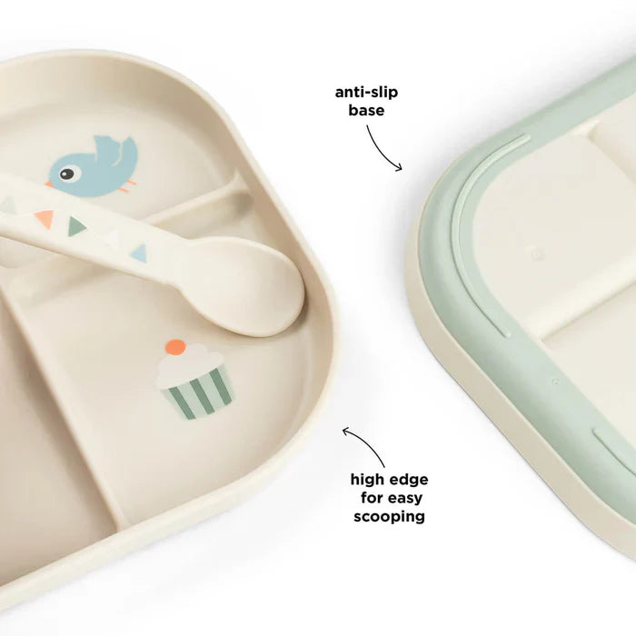 Maak kennis met het ideale bord voor nieuwsgierige eters: dit handige compartimentenbord houdt elke maaltijd overzichtelijk én stressvrij. Dankzij de anti‑slip bodem blijft het stevig op zijn plek staan, zodat je kindje zonder gedoe kan oefenen met zelfstandig eten. De drie ruime vakken zorgen ervoor dat verschillende smaken netjes gescheiden blijven — perfect voor kindjes die graag zelf ontdekken, maar liever niet alles door elkaar hebben.