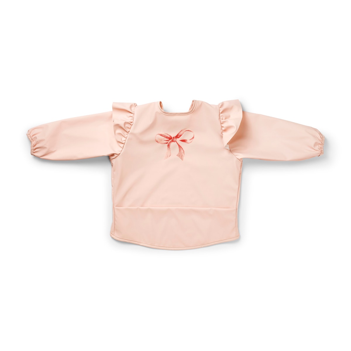 Gemaakt van zachte, duurzame materialen voelt het slabbetje comfortabel aan en zit het prettig door de lange mouwen en elastische manchetten. Het waterafstotende voorpand houdt kleding schoon en de verstelbare halsband zorgt voor een perfecte pasvorm. Het elegante Rosy Bow patroon in zachte, moderne tinten maakt het helemaal af.
