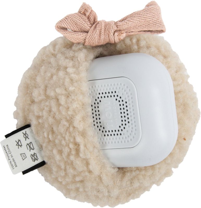 Je bevestigt het berenhoofdje makkelijk aan je Maxi Cosi of kinderwagen met het touwtje. Met een knop kun je het muziekdoosje aanzetten, het volume aanpassen en het geluid kiezen. Omdat de knop extra groot is, is hij makkelijk te bedienen, zelfs als hij in de knuffel zit.
