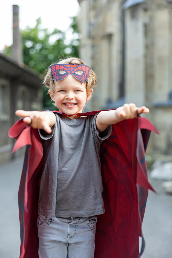 De set wordt compleet gemaakt met een rood spinnennet‑oogmasker, perfect om de superheldentransformatie helemaal af te maken. Ideaal voor verkleedpartijtjes, carnaval of gewoon fantasierijk spel — met deze wings voelt je kind zich klaar om elk moment in actie te komen!