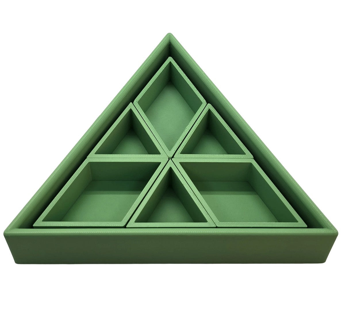 De vorm van de driehoek creëert een duidelijk en stevig vakje. Dat maakt het sorteren van materialen heel eenvoudig. Magic sand, speelrijst, kleine accessoires, stekers of mini speelgoed krijgen allemaal hun eigen plek.