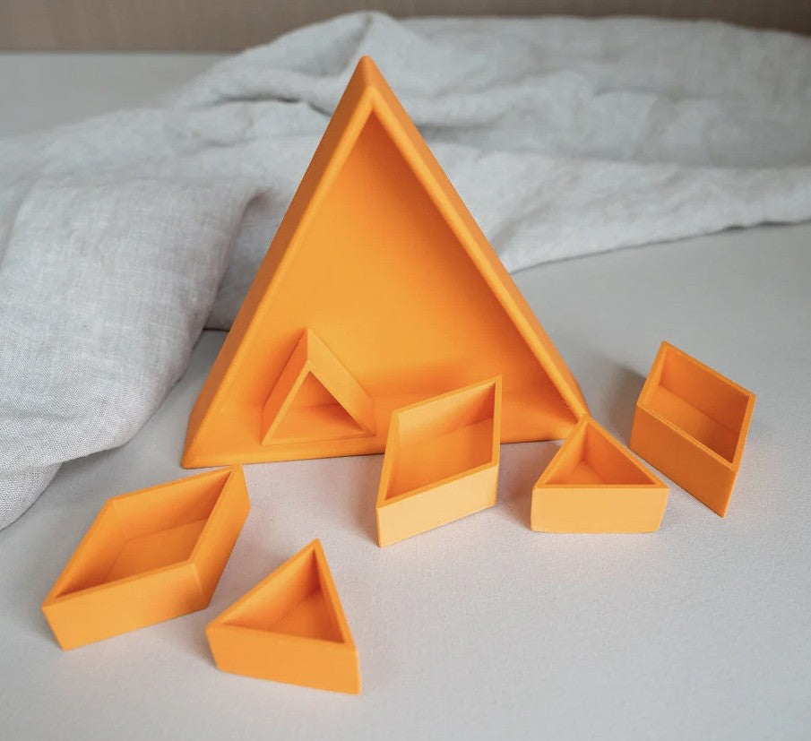 De vorm van de driehoek creëert een duidelijk en stevig vakje. Dat maakt het sorteren van materialen heel eenvoudig. Magic sand, speelrijst, kleine accessoires, stekers of mini speelgoed krijgen allemaal hun eigen plek.