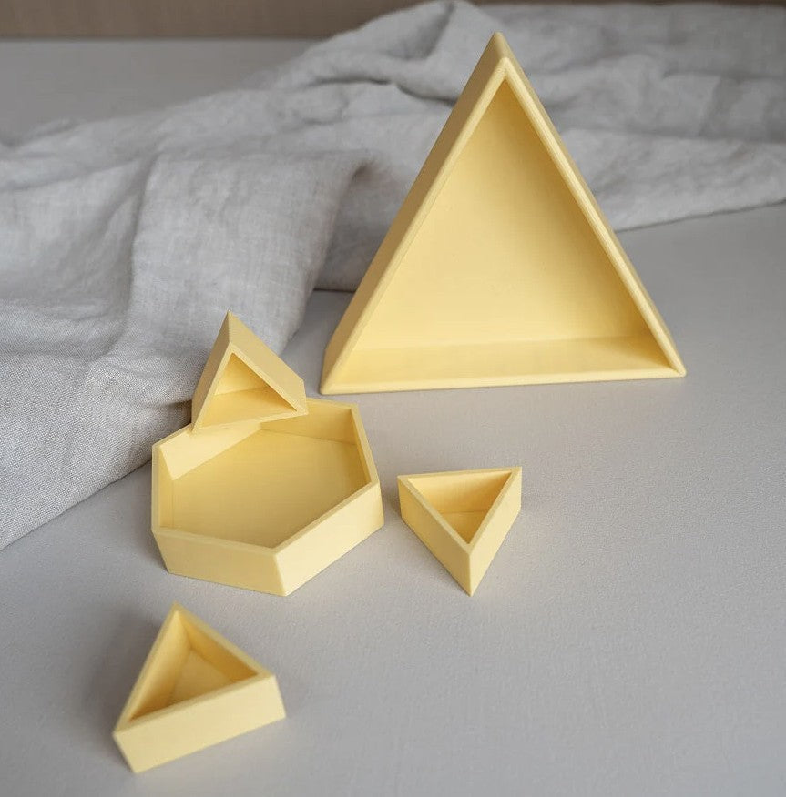 De Mandigo inlegdriehoeken van Grennn zijn ontwikkeld om spel en opbergen zo overzichtelijk mogelijk te maken. Elke driehoek is los verkrijgbaar, waardoor je volledig vrij bent in het samenstellen van je eigen kleurencombinatie. Zo kun je deze vorm precies indelen op de manier die past bij jouw collectie of bij het thema waarmee kinderen spelen.