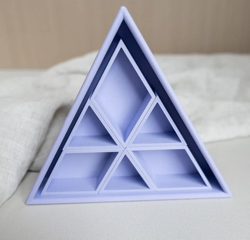 De vorm van de driehoek creëert een duidelijk en stevig vakje. Dat maakt het sorteren van materialen heel eenvoudig. Magic sand, speelrijst, kleine accessoires, stekers of mini speelgoed krijgen allemaal hun eigen plek.
