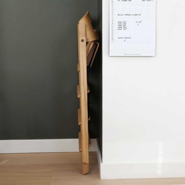 Het slimme klapmechanisme maakt de stoel daarnaast een favoriet in moderne huishoudens: in één beweging vouw je hem volledig plat tot slechts 13 centimeter breed, ideaal om discreet op te bergen of mee te nemen. Opengevouwen sluit de vaste zithoogte perfect aan op een standaard eettafel, zodat je kind meteen betrokken wordt bij elk eetmoment.