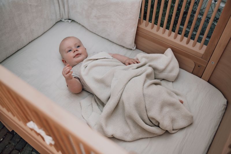 De Wiegdeken Lisbon – Dew is een superzachte gebreide deken, gemaakt in Portugal van 100% zuivere katoen. De fijne garendikte en tijdloze steek zorgen voor een mooie balans tussen comfort en stijl. De deken is licht, ademend en daardoor geschikt voor elk seizoen.