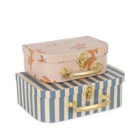 Set van 2 leuke kartonnen koffertjes met metalen opening van ons favoriete Deense merk Konges Sløjd. De kleine koffer past in de grotere! Welke kleine schatten berg jij hier in op?