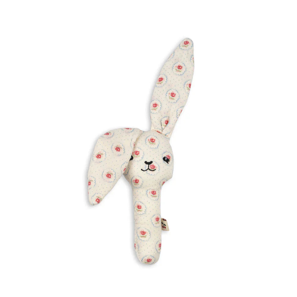 Dit lief konijntje zorgt voor plezier en comfort! Deze handrammelaar heeft een belletje binnenin dat een vrolijk en rustgevend geluid maakt wanneer je ermee schudt. Perfect formaat voor kleine handjes om mee te spelen.