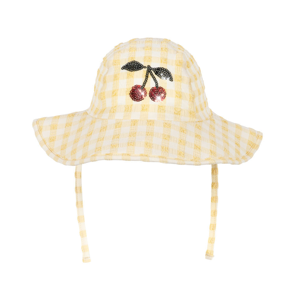 Een comfortabele zwemhoed gemaakt van een zachte en rekbare seersucker stof, ontworpen met een gevoerde rand voor extra draagcomfort. Ideaal voor zonnige dagen aan het strand of bij het zwembad.