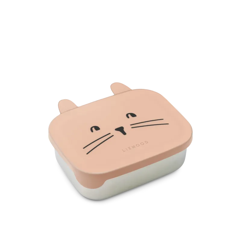 Een lichtgewicht, roestvrijstalen lunchbox met een schattig siliconen deksel verdeeld in drie handige compartimenten.
