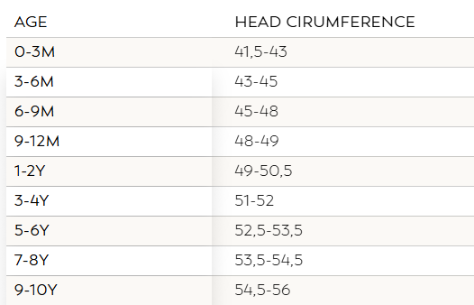 De juiste maat kiezen is eenvoudig: meet de hoofdomtrek van je kindje en vergelijk met de richtlijnen hieronder. Elke maat is gebaseerd op de hoofdomtrek van het kind, zodat het hoedje mooi aansluit en goed blijft zitten.