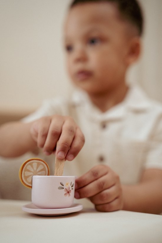 Het theeservies is gemaakt van duurzaam hout en afgewerkt met kindvriendelijke verf op waterbasis ; veilig, stijlvol en van de vertrouwde Little Dutch kwaliteit.