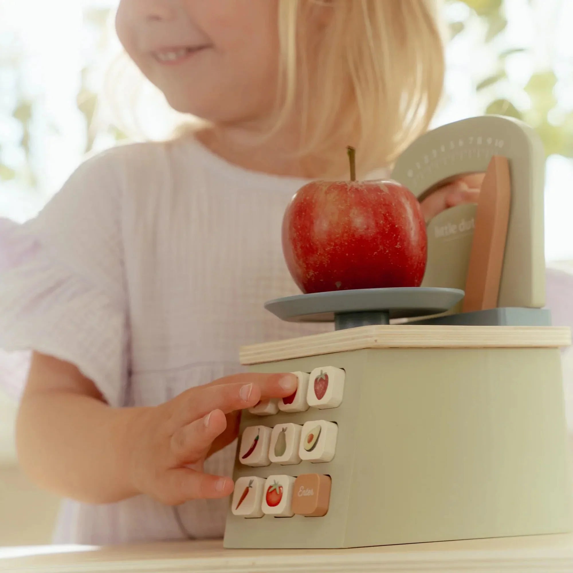 Maak het winkeltje spelen nóg leuker met deze charmante houten weegschaal van Little Dutch. Perfect voor kleine handjes en grote fantasieën! Leg groente of fruit op de schaal, beweeg de wijzer, en ontdek samen hoe wegen werkt: net als in de echte supermarkt.