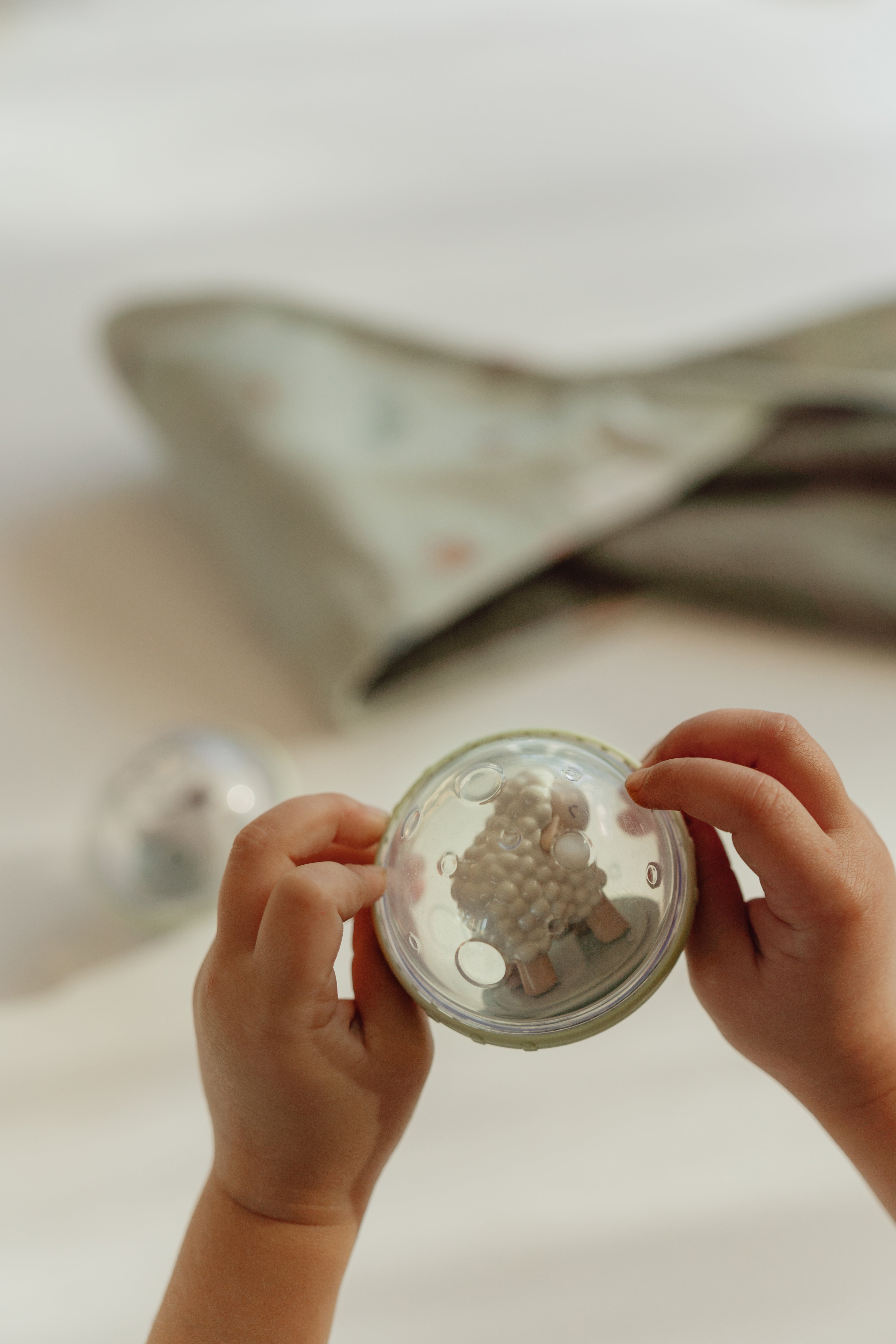 Deze leuke balletjes in hard plastic nemen je kindje mee en stimuleren de zintuigen en de fantasie.