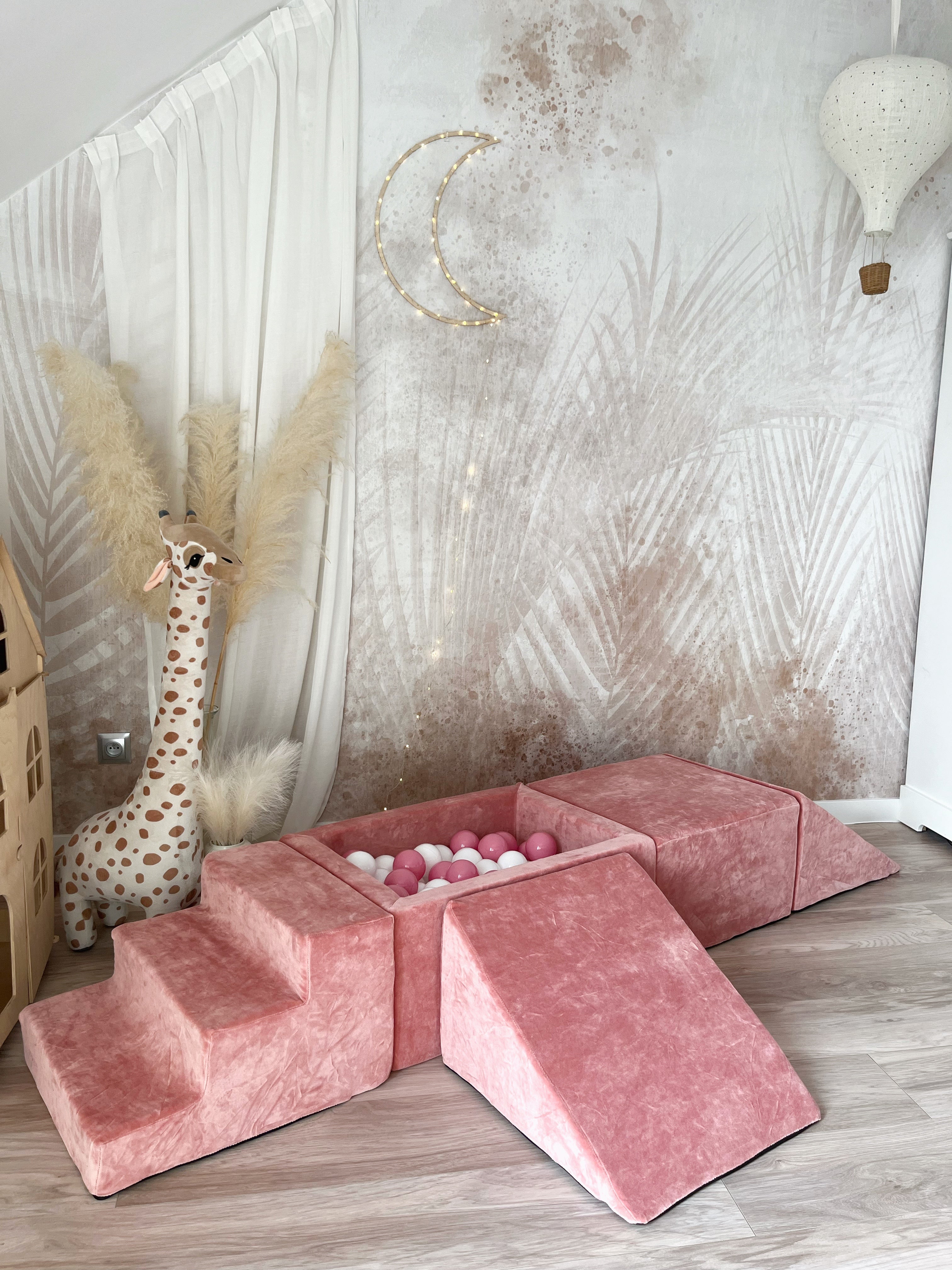 Wat maakt een echte speel-of kinderkamer helemaal af? Deze prachtige set bestaande uit ballenbad en 4 speelelementen van Moje.