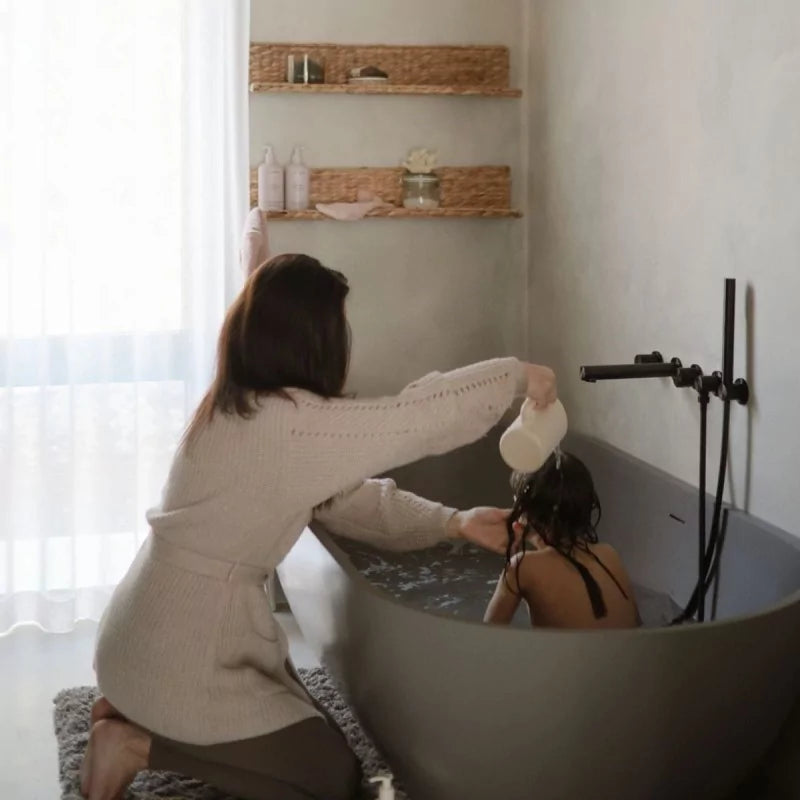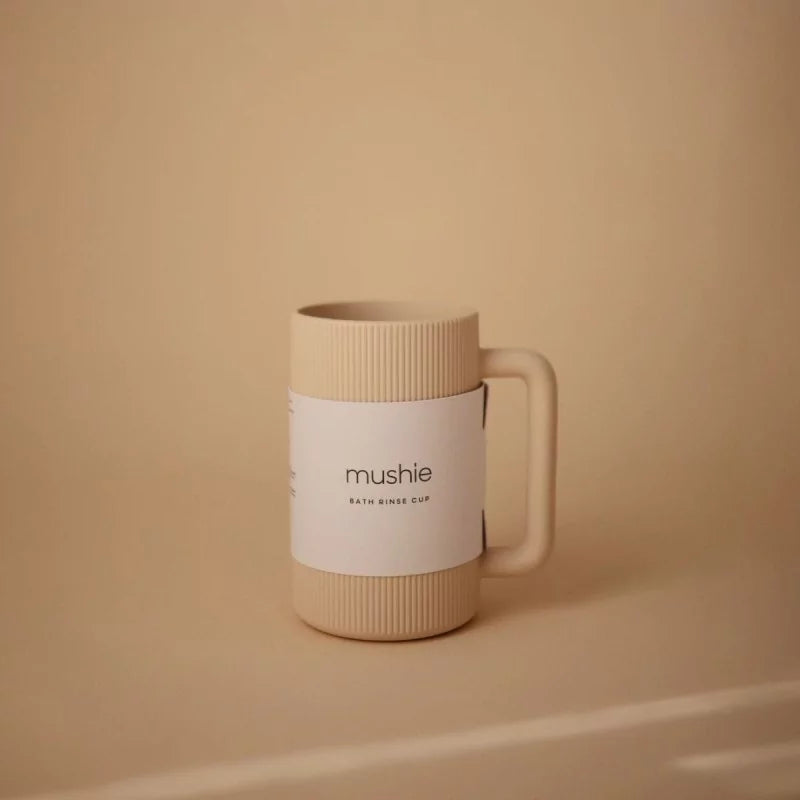 Transformeer je avondroutine met de Mushie Badspoelbeker, ontworpen om schuim en bubbels moeiteloos weg te spoelen.
