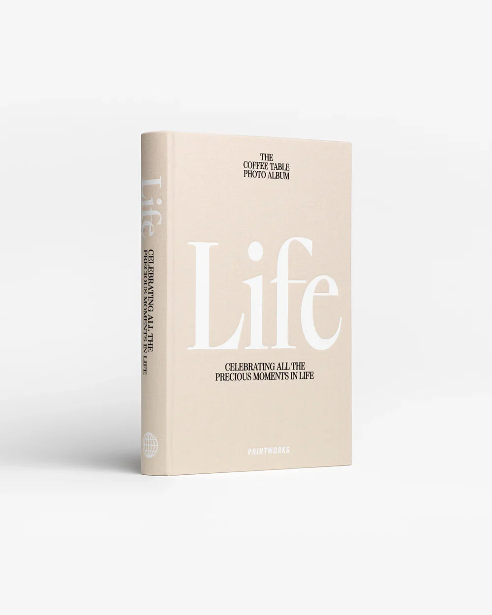 Ontdek het prachtige en innovatieve fotoboek, Life, ontworpen om de beste vriend van elke boekenplank te zijn. Dit prachtige album heeft een hardcover bekleed met beige doek en subtiele witte tekst, waardoor het een elegant alternatief is voor traditionele koffietafelboeken.