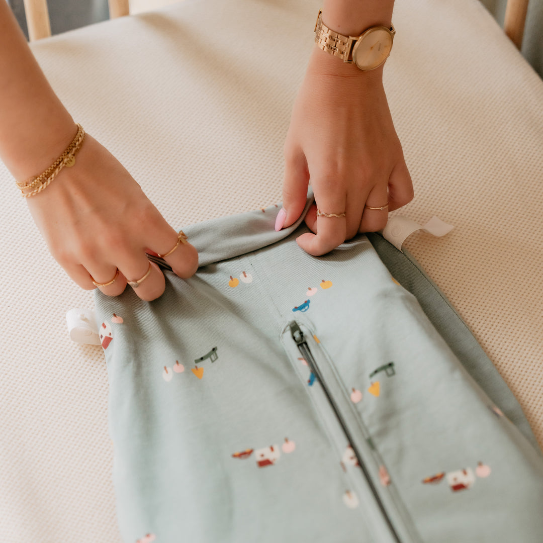 Hoe kies je de juiste maat voor je slaapzak? Om te weten welke maat jouw kindje nodig heeft, meet je je baby op van de schouders tot de voetjes. Tel daar nog zo’n 10 à 15 centimeter bij en je hebt de juiste maat! Belangrijk: koop je slaapzak nooit te groot. Als de hals of armopeningen te groot zijn, kan je baby wegzakken in de slaapzak. Kies een slaapzak met de juiste TOG waarde. TOG staat voor Thermal Overall Grade. Deze waarde geeft aan hoe warm een stof/textiel is en hoeveel lichaamswarmte de stof vasthoudt. Hoe hoger de TOG-waarde, hoe hoger de warmte- en isolatiegraad van de stof. Is het koud in de slaapruimte, kies dan een slaapzak met een hoger TOG-cijfer. De TOG waarde gaat van 0 tot 4 en geldt enkel bij kamertemperatuur, niet voor buiten. Ontdek er alles over in onze blog: https://www.degeleflamingo.com/blogs/news/alles-wat-je-wil-weten-over-tog