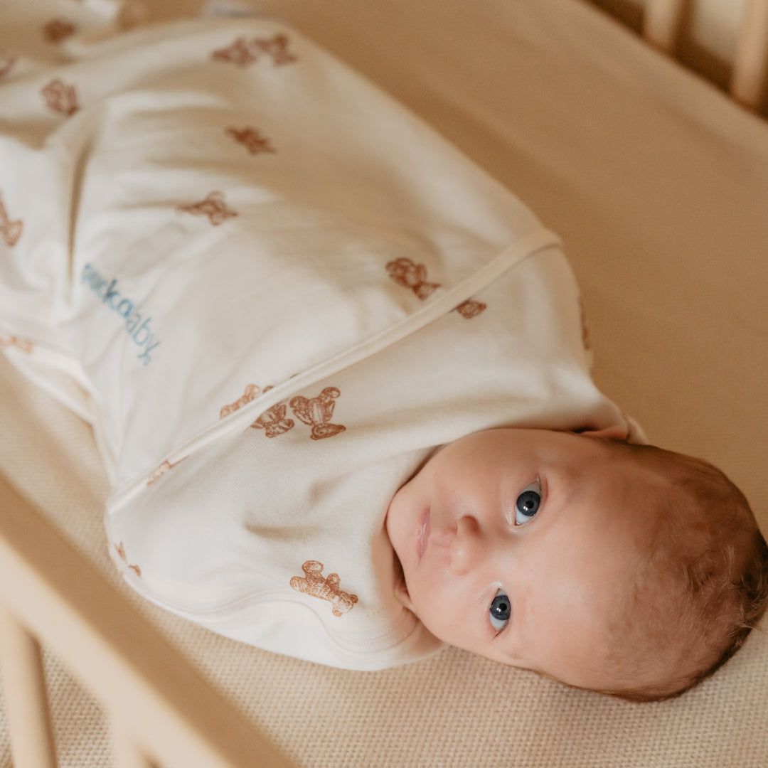 Puckababy inbakerslaapzak om je baby veilig in te bakeren. Slaapoplossing voor baby's die vaak huilen. Bevordert een gezond slaapritme. Deze gepatenteerde en bekroonde inbakerslaapzak past perfect: niet te strak, niet te warm, eenvoudig te gebruiken en stijlvol. Gemaakt van 100% katoen. 0.5 TOG. Een leuk coconnetje met prachtige details. Voor ouders die enkel het beste voor hun kleintje willen. Nederlands design, gemaakt in Europa.
