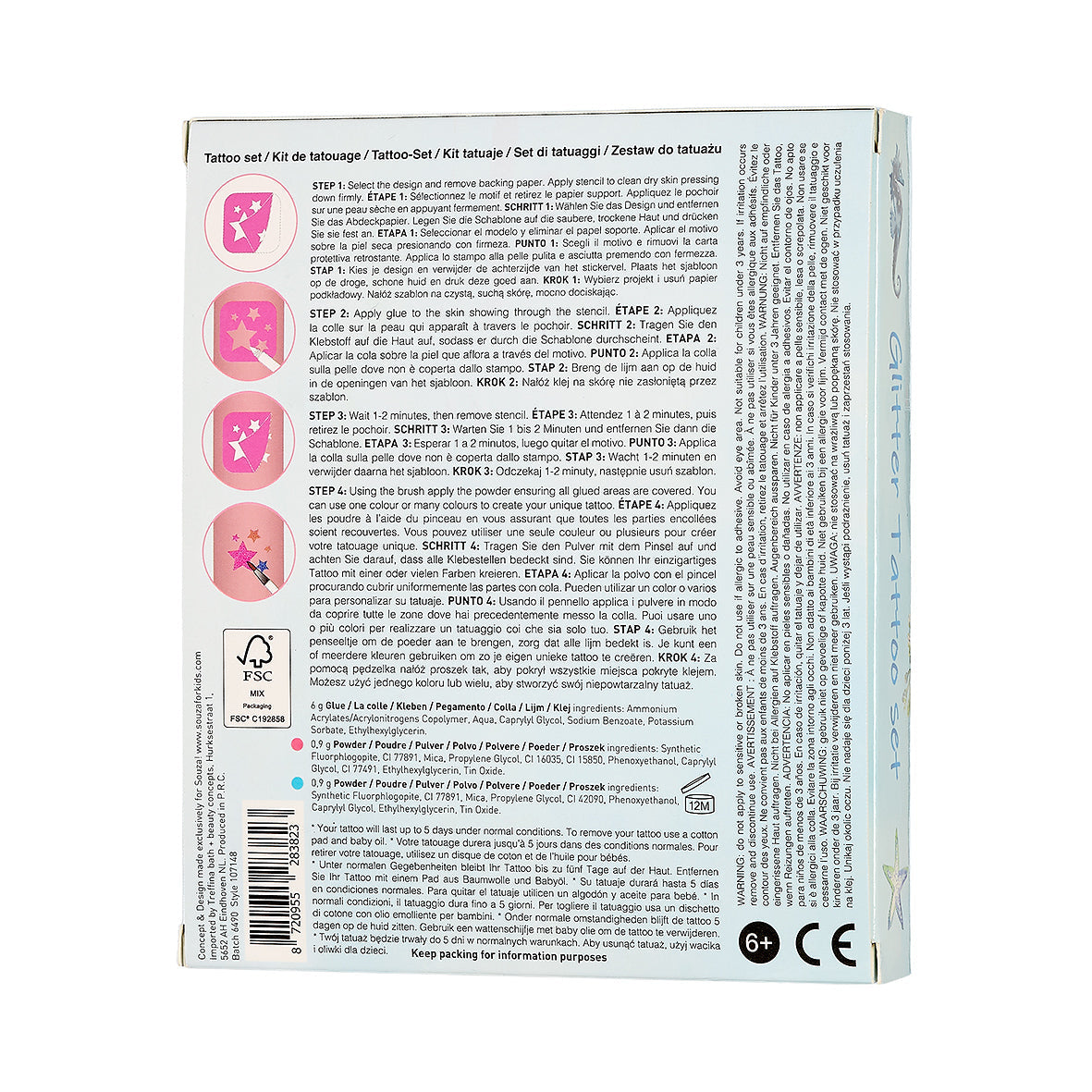 Leuke beautyset van Souza voor je kleine schat! Je kindje tovert vanaf nu de mooiste glitter tattoos op je arm, gezicht of waar je maar wil!