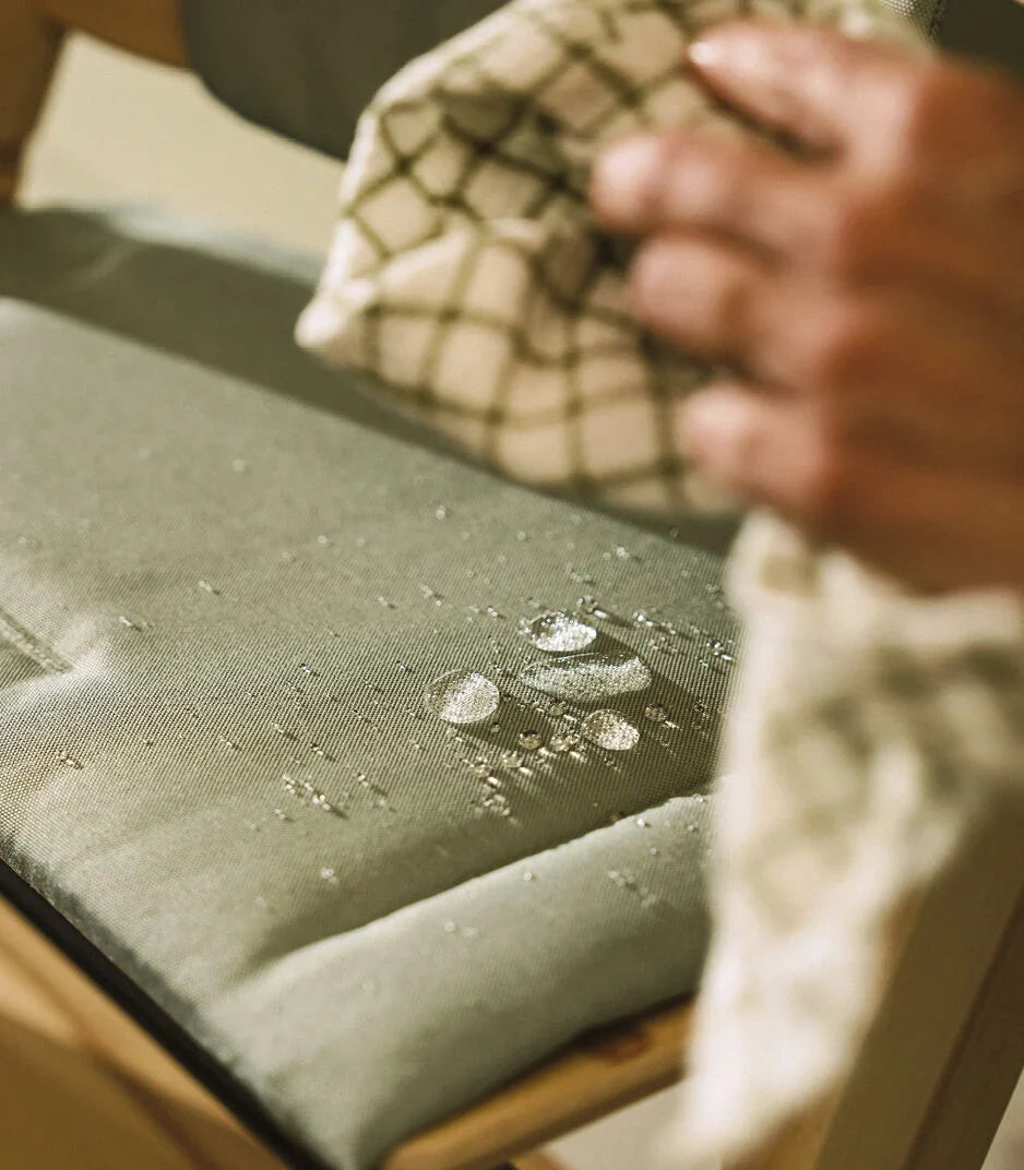 Enige jammere is dat de vlekken net iets minder gemakkelijk af te kuisen zijn dan gehoopt. Na de volgende wasbeurt eens behandelen met waterafstotend product. Hopelijk is het dan helemaal tiptop!